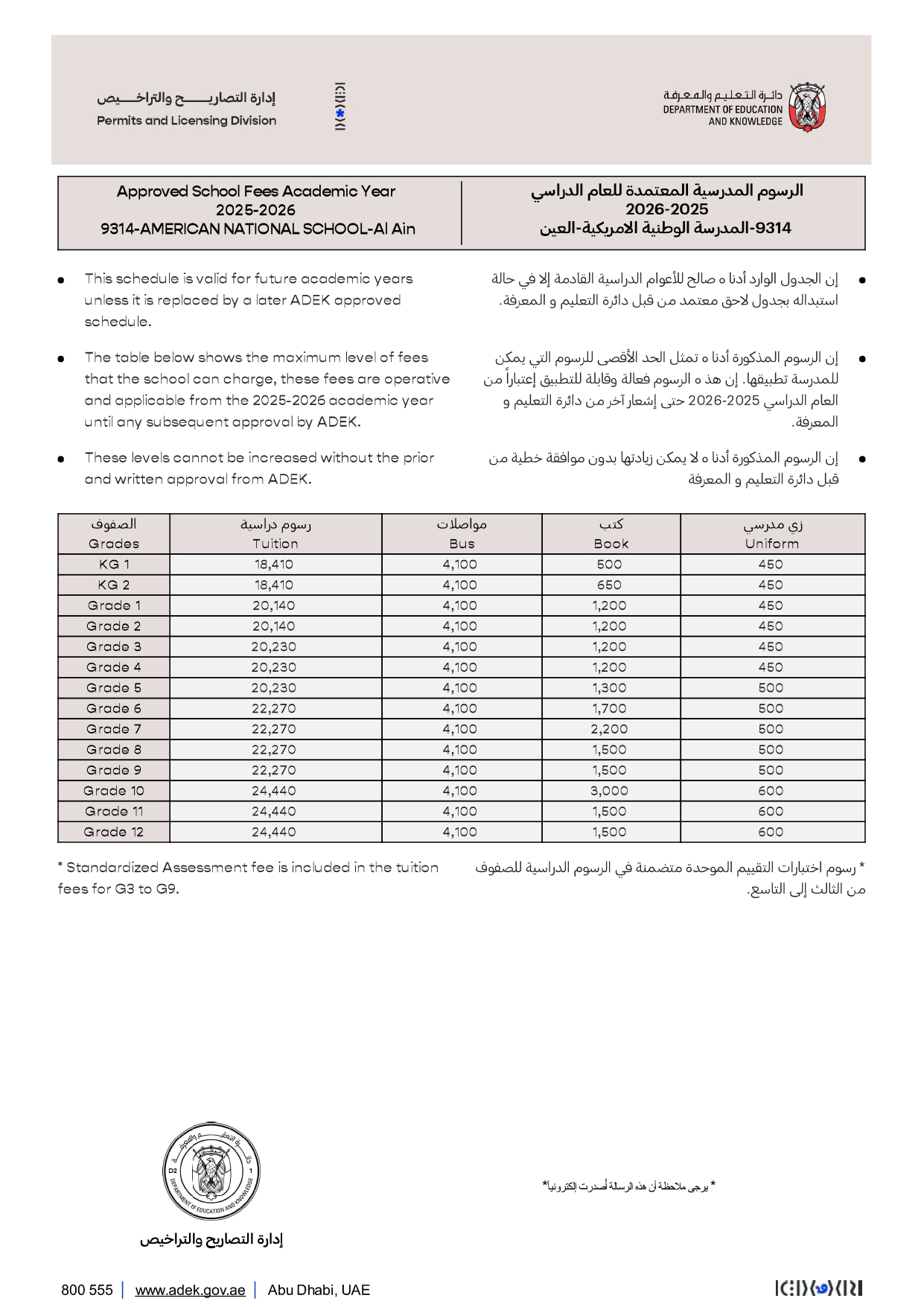 School Fee 2025-2026